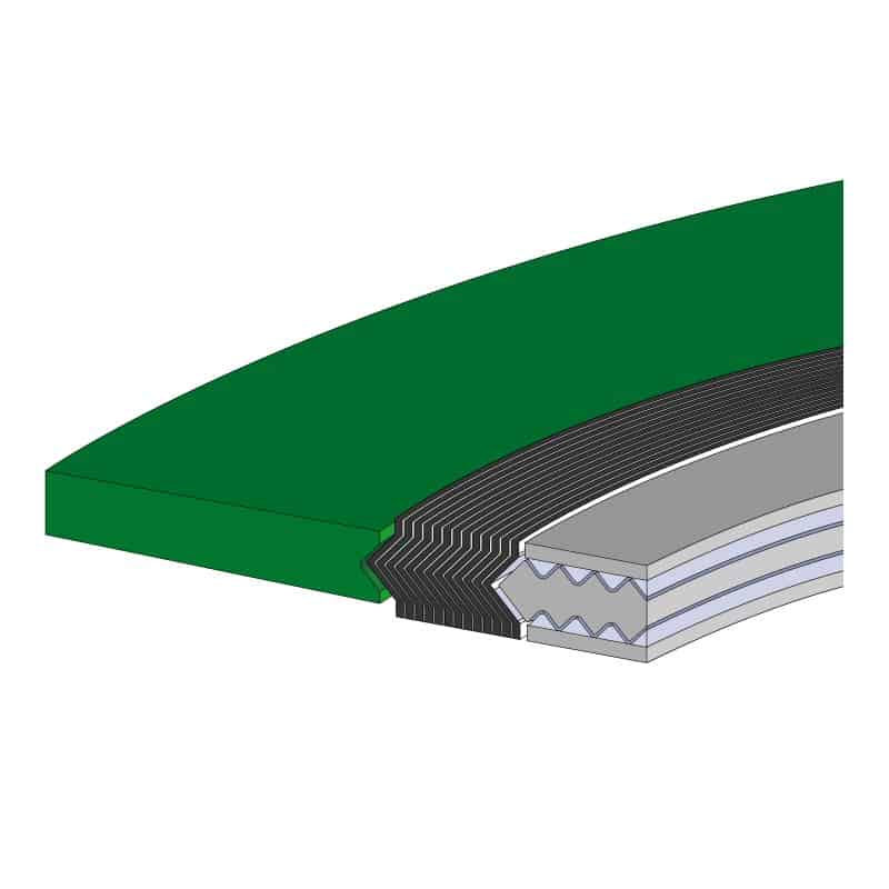 Maxiprofile 내부 링을 통합하면 두 개의 밀봉 영역이 있는 개스킷이 생성됩니다. Maxiprofile은 고성결성 개스킷에 필요한 압축 스톱 역할도 하며 나선형 와운드 밀봉 요소 안쪽에 씰을 생성할 수도 있습니다.